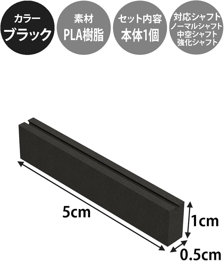 【商品詳細】商品内容:本体1個、サイズ:縦0.5cm,横5cm,高さ1cm、カラー:ブラック、素材:PLA樹脂、※曲がりが大きい場合は、修正より交換をご検討ください。