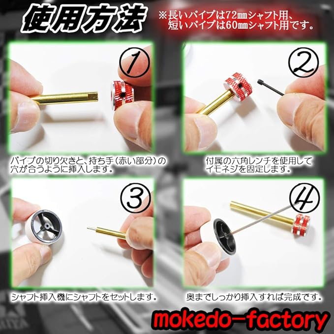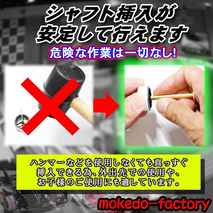 ミニ四駆のシャフトをホイールに挿入する時に使用する工具です。