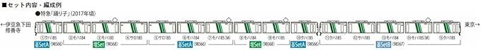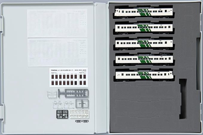 ハイグレード (HG)仕様。車番は選択式で転写シート付属。JRマーク、靴ずり、ドアレールは印刷済み。トイレタンクは取付済み。トレインマークは印刷済みで「踊り子」装着済み「湘南ライナー」「回送」付属。