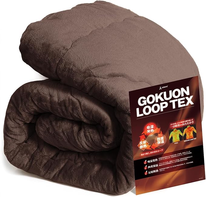 【極温!暖かさ持続!】極温 毛布 シングル 冬 極厚 ループテックス 吸湿発熱わた 蓄熱アルミシート入り 4層構造 高保温 静電気抑制 フランネル 洗える 掛け敷き兼用 掛け布団 140 200cm ブラウン tobest | oioioichan