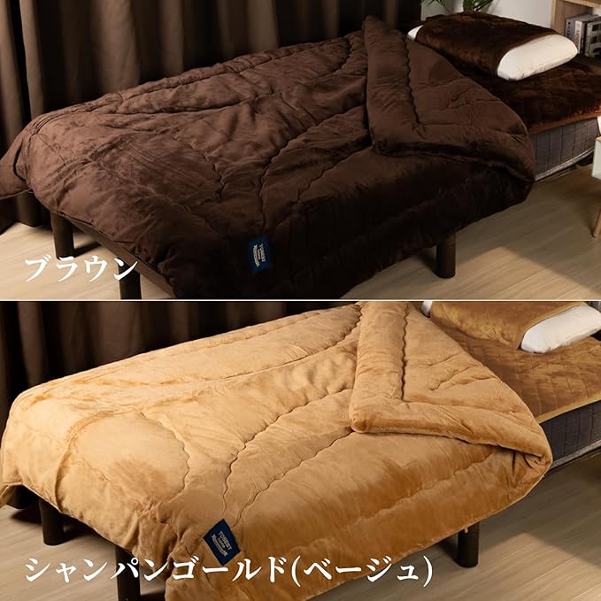 【商品詳細】品名:極温ループテックス / サイズ:シングル(約140 200cm)、ダブル(約180 200cm) / カラー:シャンパンゴールド、ブラウン / 素材:[表地]高密度フランネル生地(ポリエステル100%)、[中地]アルミ蒸着生地(ポリエステル100%)、[詰め物]吸湿発熱綿(レーヨン30% ポリエステル70%)、[裏地]高密度フランネル生地(ポリエステル100%) / 日本国内企画 / お問い合わせ:日本国内窓口