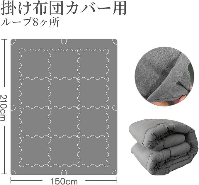 【商品仕様、安心できる品質.】「サイズ」シングル:150 210cm セミダブル:170 210cm ダブル:190 210cm ※キルティング製(許容範囲+5%,-3%)「表側・裏側」ポリエステル100% (ピーチスキン加工)「詰め物」中空ポリエステル綿100% (中空の織維、重量が軽く、保温性も高い) 「ループ」8ヶ所 (掛けカバーと掛け布団のズレを防ぐため)。