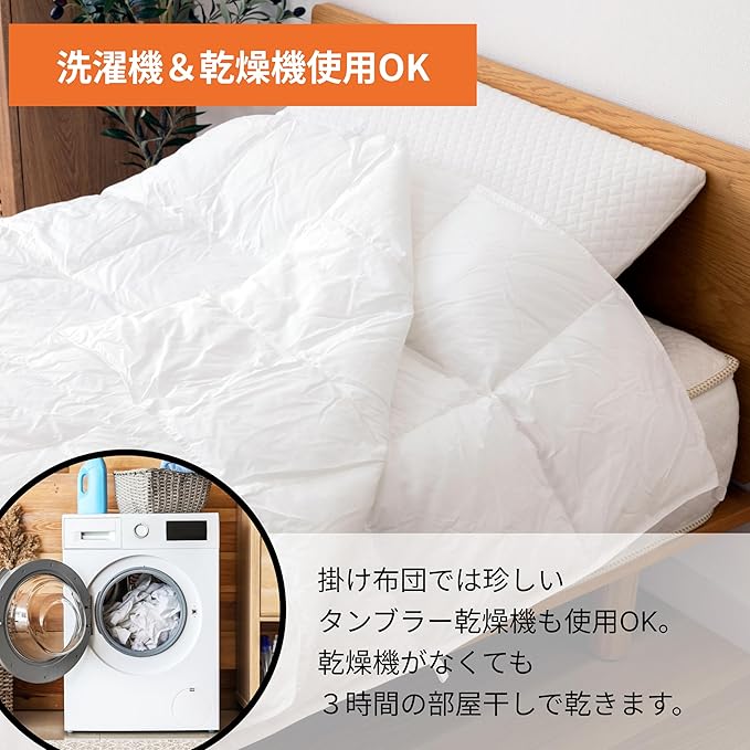 【人気の理由3】高コスパ。保温性や湿度の調整機能は羽毛と同レベル。羽毛では難しい丸洗い、乾燥機、圧縮、コンパクト化、防ダニなど多数の機能を揃えつつ、さらに価格が20,000円台〜という低コストも人気の秘密です。