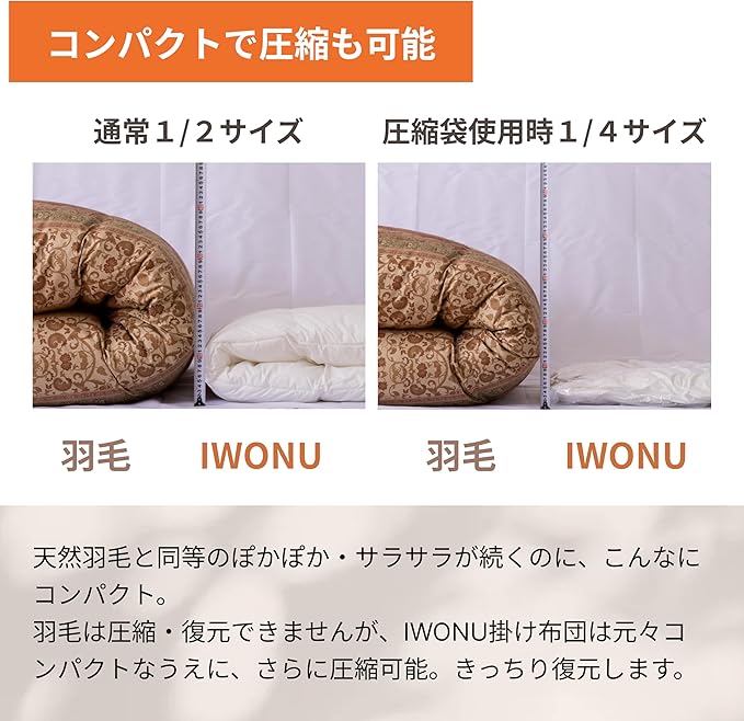 【寝具選びの、失敗をゼロに。】を目指して、創業70年の老舗寝具専門店が本気で開発した掛け布団。それが【IWONU掛け布団】