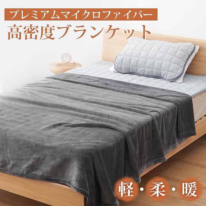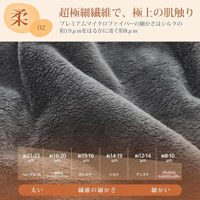 <ふんわり、なめらか>:毛布は高密度フランネルマイクロファイバー生地を採用しています。キメ細やかな繊維が、ふんわりで柔らかな肌触りを与え、体を優しく包み込みます。