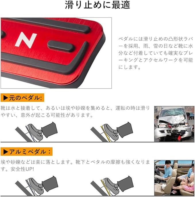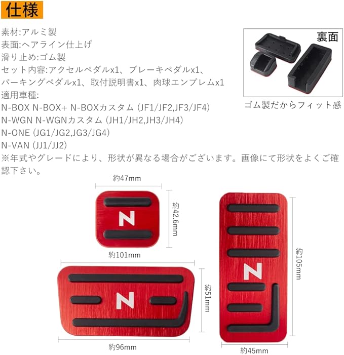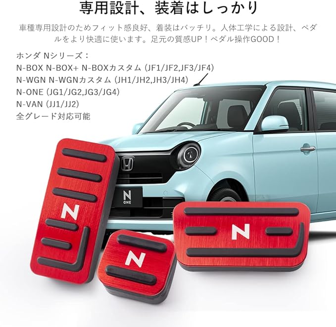 Futwod ホンダ N-BOX N-WGN N-ONE N-VAN ペダル アルミペダル カバー Honda Nシリーズ パーツ 内装 カスタム アクセサリー 滑り止め ブレーキ アクセル パーキングブレーキ レッド 3ピース | oioioichan