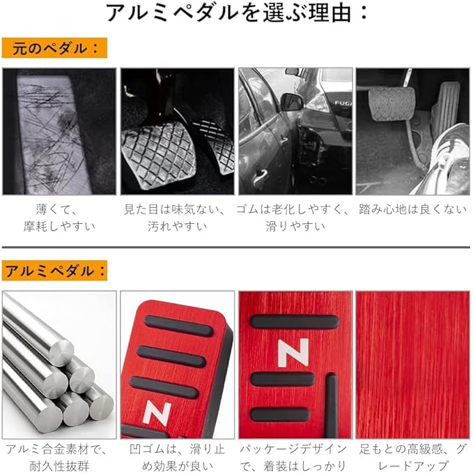 【良い保護性】運転時のペダル部分をしっかり保護しますので、装着することで大切な愛車を保護します。自分では気を付けていてもいつの間にかキズが付いてしまうのがどうしても気になるという方には絶対におススメ!