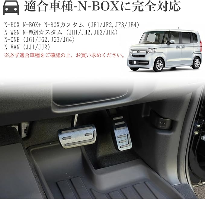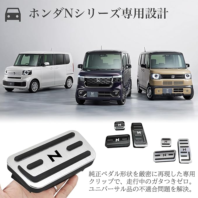 【ホンダNシリーズ専用設計】N-BOX(JF5/JF6)/N-WGN/N-VANなどに完全適合。純正ペダル形状を厳密に再現した専用クリップで、走行中のガタつきゼロ。ユニバーサル品の不適合問題を解決。ご購入前に必ず適合機種をご確認の上、ブレーキペダルとアクセルペダルの形状をご確認ください(図をご参照ください)。