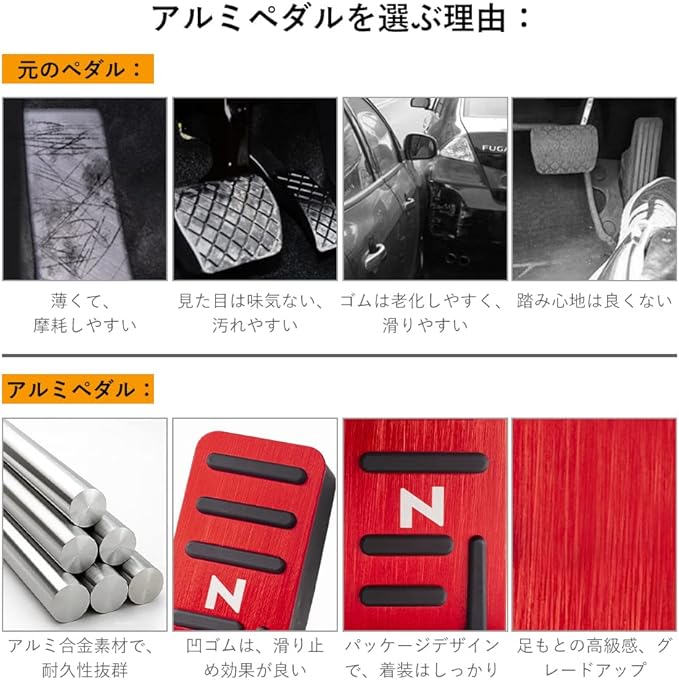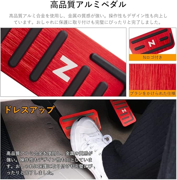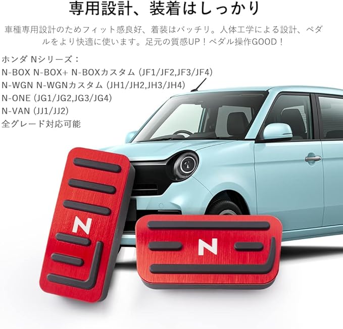 Futwod ホンダ N-BOX N-ONE N-WGN N-VAN ペダル アルミペダル パーツ アクセサリー honda Nシリーズ ペダルカバー カスタム 内装 滑り止め ブレーキペダル アクセルペダル レッド 2ピース | oioioichan