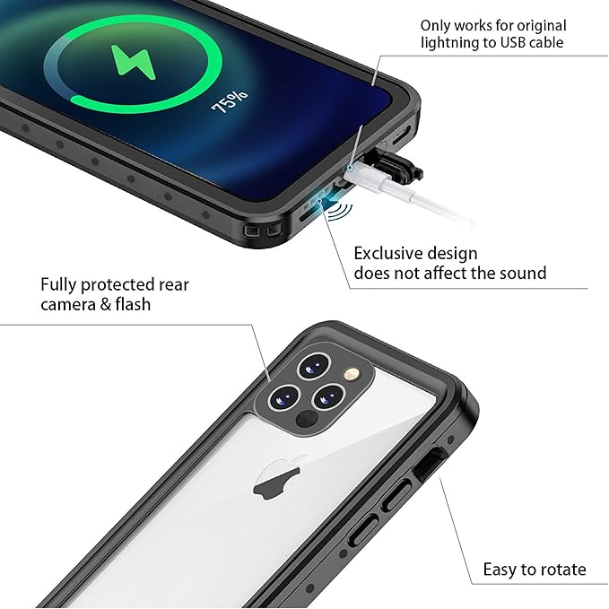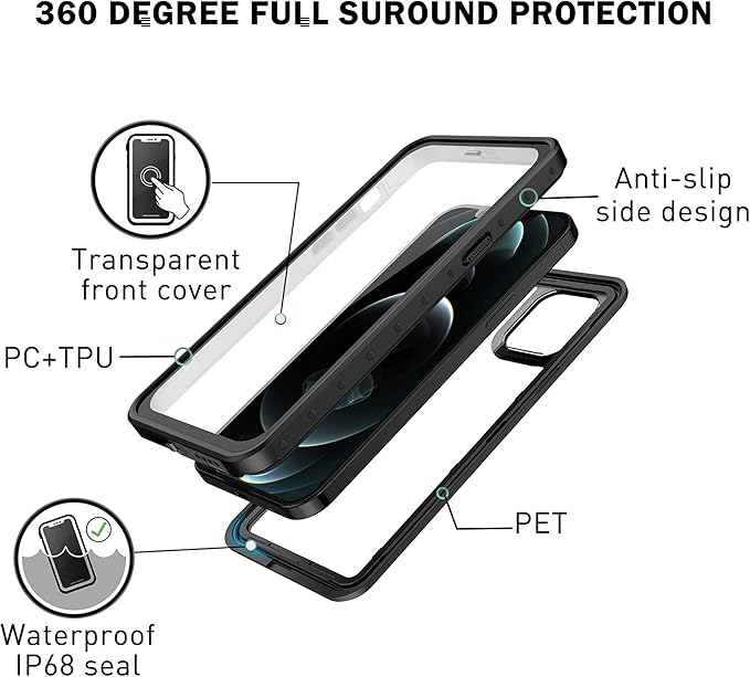AICase iPhone 12 Pro Max防水ケース、雪、ほこり、衝撃、IP68認定の全身保護完全密閉水中ケース、Apple iPhone 12 Pro Maxインチに適しています | oioioichan