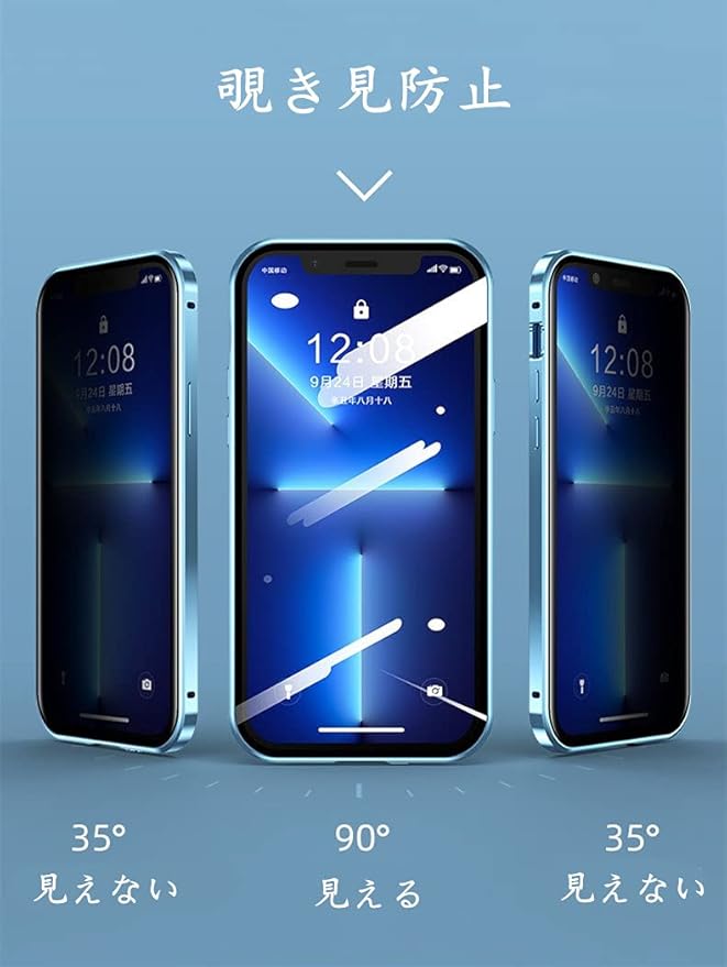 ★覗き見防止!前面の強化ガラスに覗き見防止機能を付加した。前面+裏面両面強化ガラス付きで、360 全面保護できます。