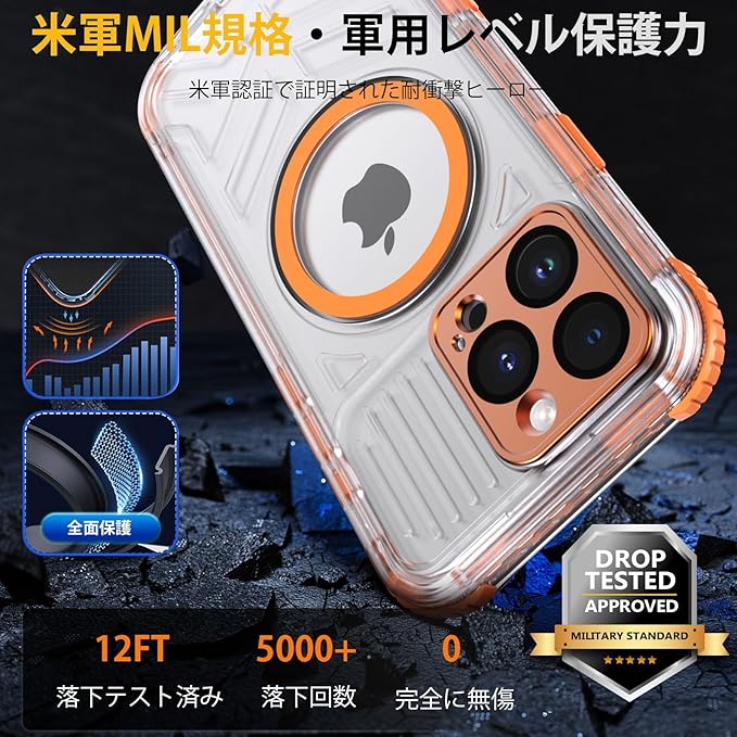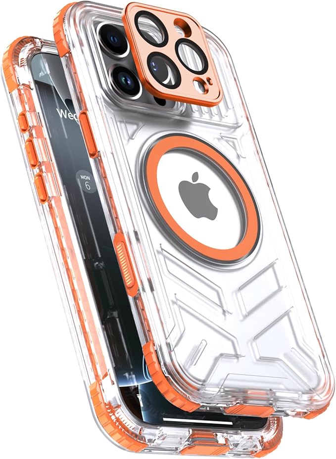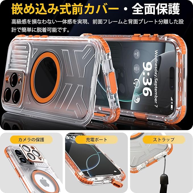 【防水・米軍基準・MagSafe対応】UMITTOS iPhone 16 Pro Max 用 ケース 防水 衝撃吸収 水中撮影対応 顔認証対応 全面保護 完全防水 防雪 防塵 滑り止め 手持ちやすい 頑丈 耐衝撃 ストラップ付き 雨の日、お風呂など適用 防水ケース(6.9インチ) (オレンジ) | oioioichan