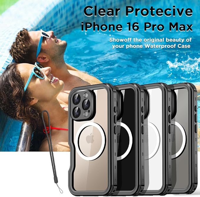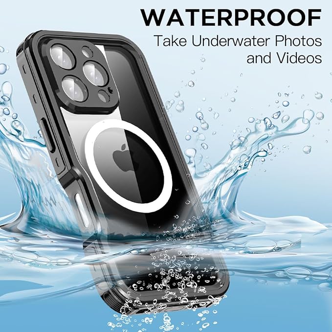 【IP68認定防水】水中完全密閉IP68認定、iPhone 16 Pro Max防水ケースと互換性があり、6.6〜10フィート/ 2〜3メートルに30分間浸水できるように設計およびテストされており、水中で写真を撮ることができます。