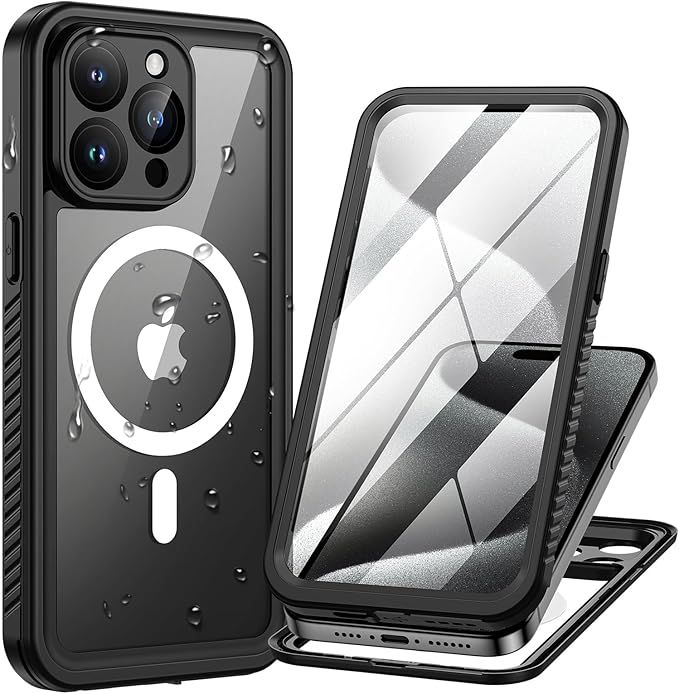 Lanhiem iPhone 15 Pro Max 防水ケース 5G MagSafe対応 完全防水 IP68米軍規格 Face ID認証 耐衝撃 滑り止め 防塵 防雪 水中撮影 超軽量 薄型 全面保護のアイフォン15 プロ マックス防水カバー ブラック | oioioichan