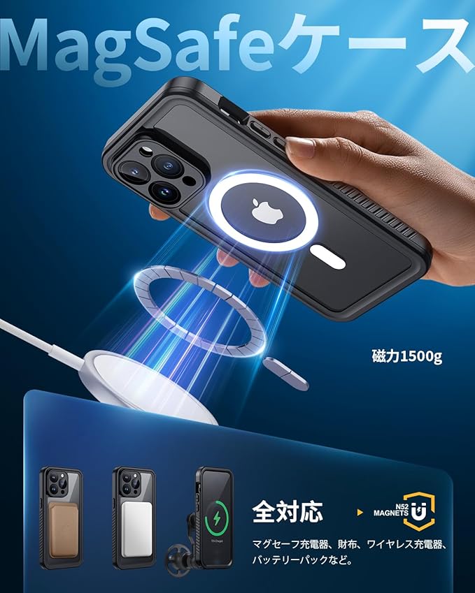 【超強力磁気&Face ID認証】MagSafe対応な.を搭載されており、充電の取り付け便利。効率なワイヤレス充電の機能を実現。高感度なカバーはPVC素材を採用し、ケースに入れたままスマートフォンの操作をスム ーズに行えます。鮮明な写真・動画撮影、タッチパネル操作、音楽聞く、通話、Face ID認証機能などの操作もできます。