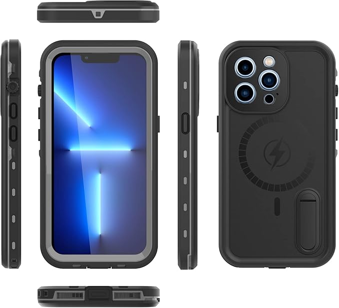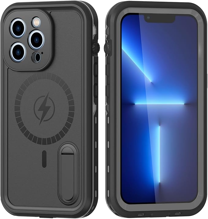 防水 iPhone 13 pro max ケース 完全防水 頑丈 防塵 水下 薄型 軽量 耐衝撃 スタンド機能 アウトドア ストラップ付き IP68米軍規格 360度全面保護 両面カバー アイフォン13 プロマックス 防水 カバー スマホ防水ケース 保護タッチパネルスクリーン付き (iPhone13promax, 黒) | oioioichan