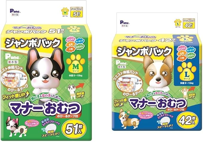 【セット買い】P.one 男の子&女の子のためのマナーおむつ のび~るテープ付き ペット用 Mサイズ 51枚入 + P.one 男の子&女の子のためのマナーおむつ のび~るテープ付き ペット用 Lサイズ 42枚入 | oioioichan