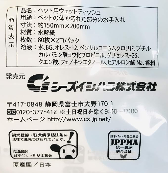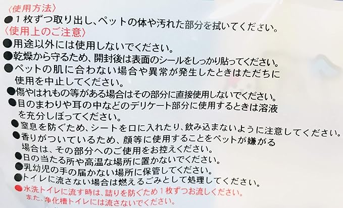 ペット用のトイレに流せるウエットティッシュ。パラペン不使用で安心。