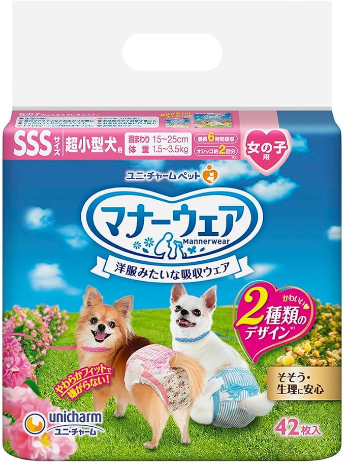 ユニ・チャーム 【セット販売】マナーウェア 女の子用 超小型犬用 SSSサイズ ピンクリボン・青リボン 42枚 2コ