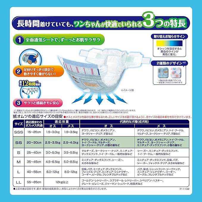 最長12時間(オシッコ約4回分)の吸収力※ワンちゃんの12時間の平均オシッコ量を参考(ワンちゃんのオシッコ量には個体差があります)