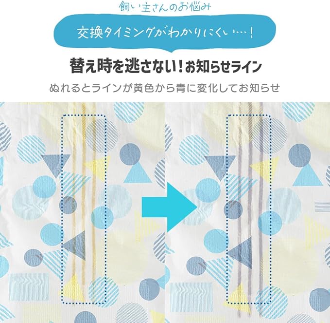 おしっこで濡れるとわかるお知らせライン付き、交換タイミングを逃がさない!接着幅が広めのテープで動いてもはがれにくい!