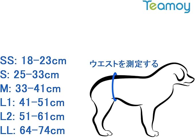 6つのサイズを用意しております。購入前に愛犬のウェストを測定して、サイズ表を参照してください。