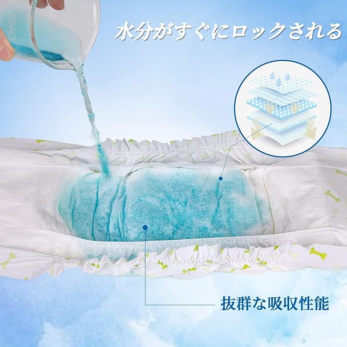 吸水性ダントツ:ワンちゃん本来の柔軟な動きを妨げないように配慮した設計に基づいて、柔らかいコットン素材で、厚さ0.3cmだけで超薄型ライナー、立体モレ防止ギャザー、 オシッコをしっかりガード、動いてもズレにくい、おしっこをちゃんとカバーしてモレを防ぎます。