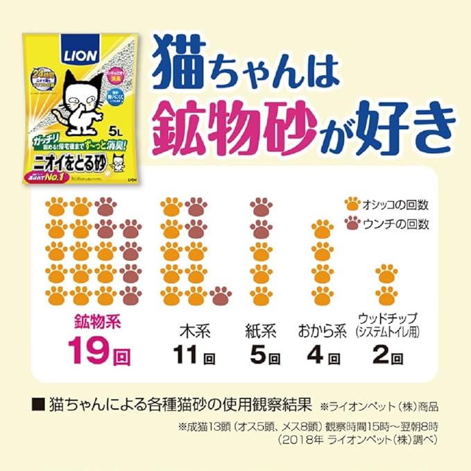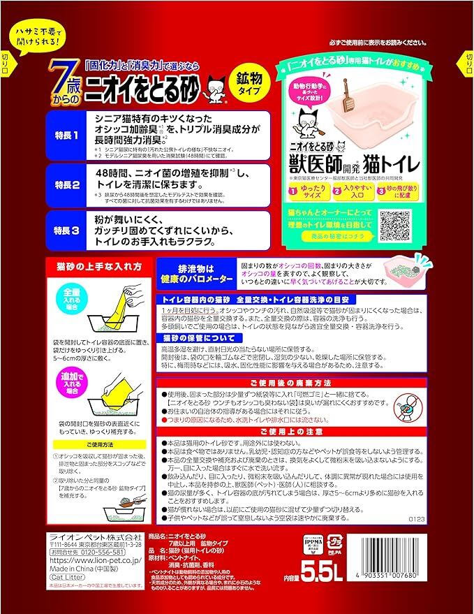ライオン ニオイをとる砂 猫砂 7歳以上用鉱物タイプ 5.5Lx4袋 ケース販売 LIONPET 【..co.jp限定】