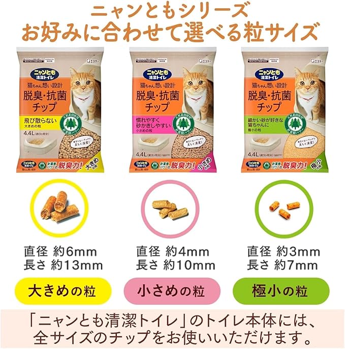ニャンとも清潔トイレ 猫砂 [天然素材でパワフルに脱臭] 脱臭・抗菌チップ 大きめの粒 4.5L 4個 [..co.jp 限定] システムトイレ 猫用 消臭 ネコ砂 (ケース販売) | oioioichan