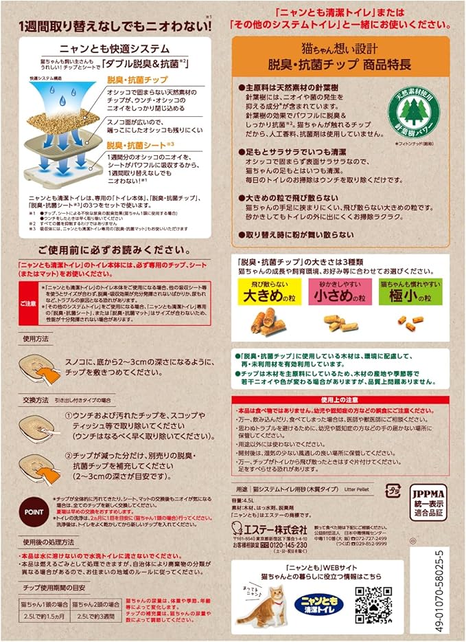 【1週間取り替えなしでもニオわない!】ニャンとも清潔トイレ専用のチップ(猫砂)とシートでダブル脱臭&抗菌※すべての菌の増殖を抑制するわけではありません