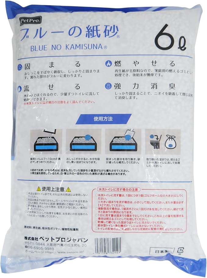すばやく吸収&しっかりと固まり、後始末も簡単な紙製の猫砂