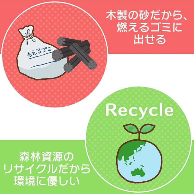 固まるタイプの猫砂です。燃えるゴミに出せます