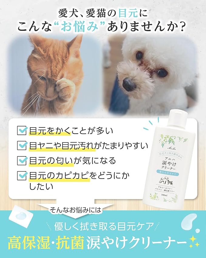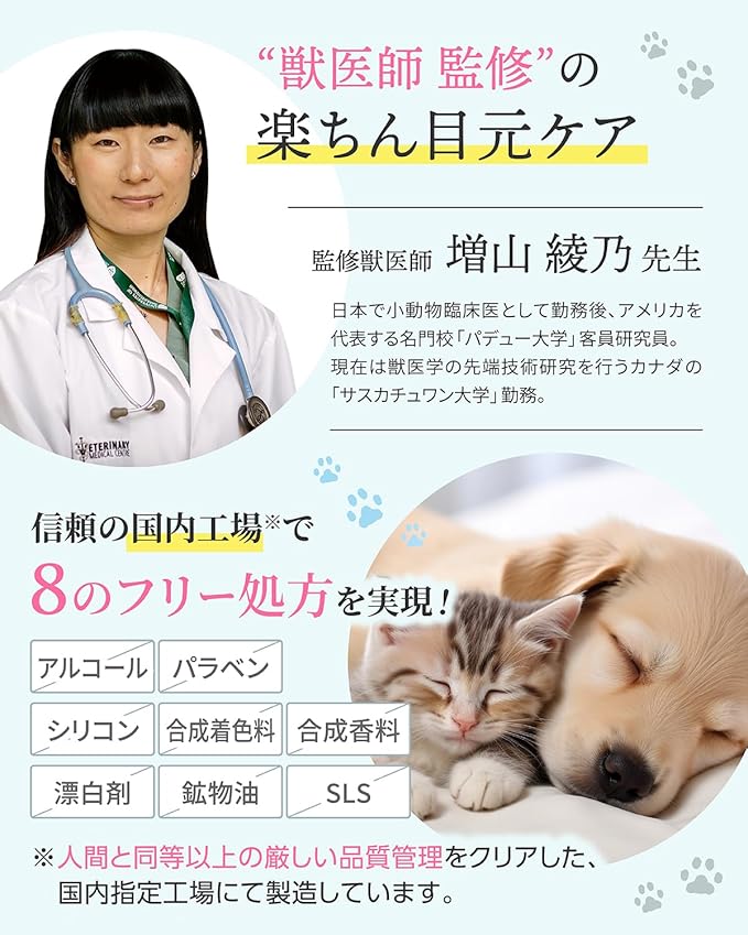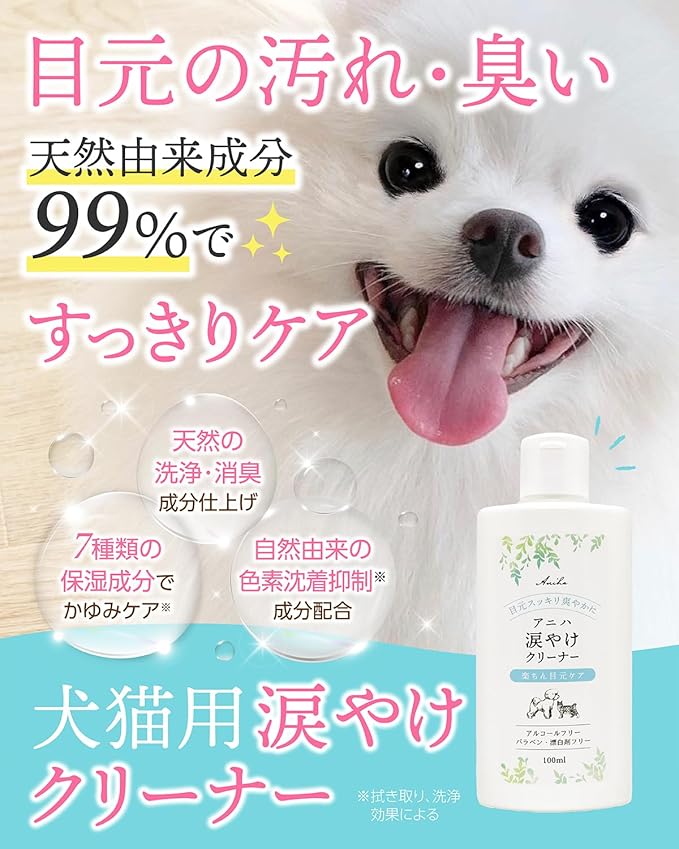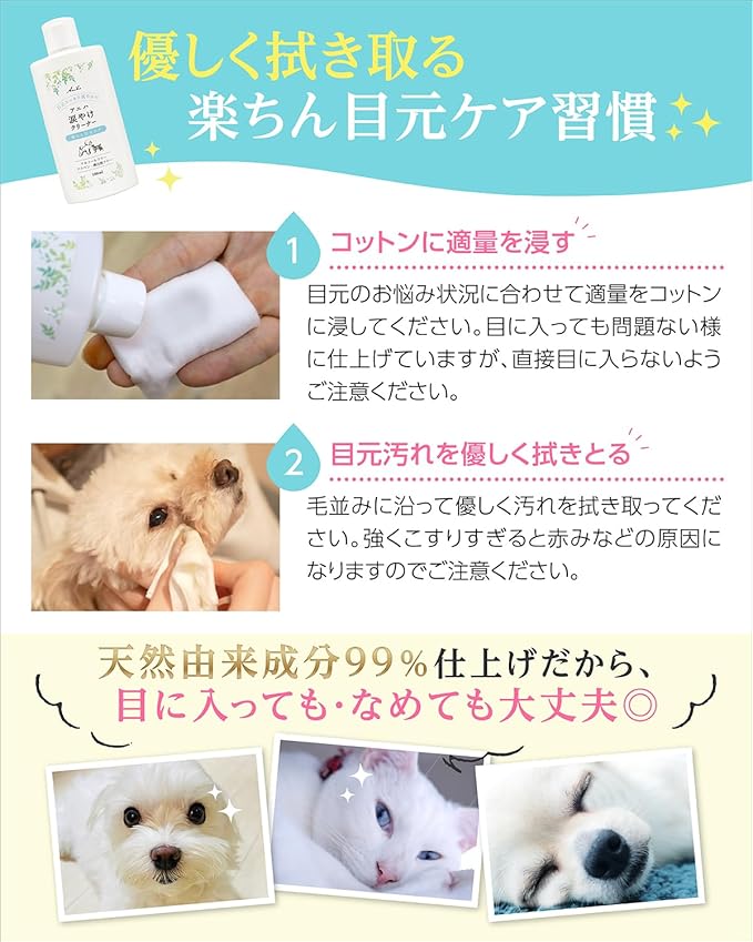 ✅ 【獣医師監修“天然由来成分99%”犬猫用 涙やけクリーナー】 ワンちゃん猫ちゃんが自分でケアできない「目元悩み」のために開発された、天然由来成分仕上げの犬猫用 低刺激 涙やけクリーナー。