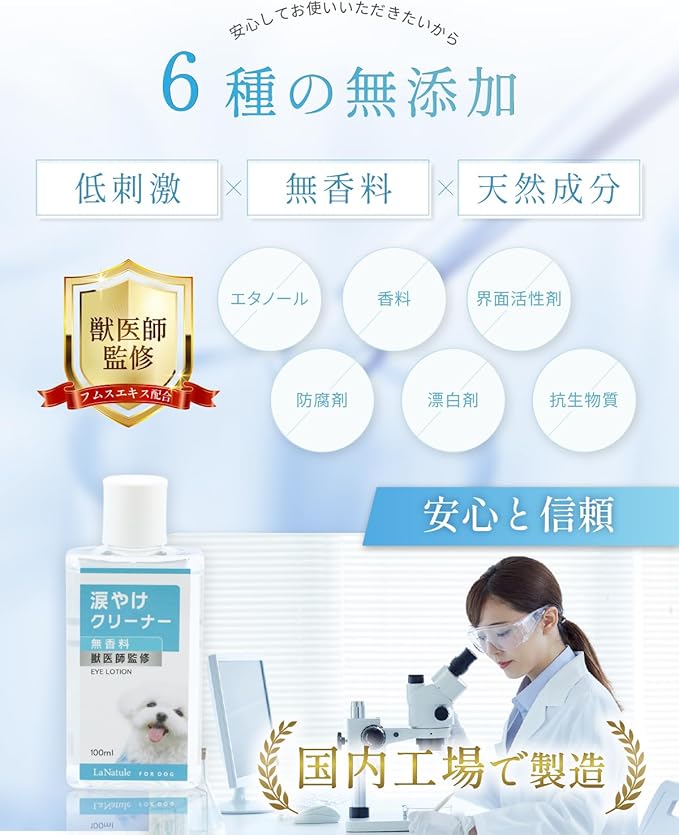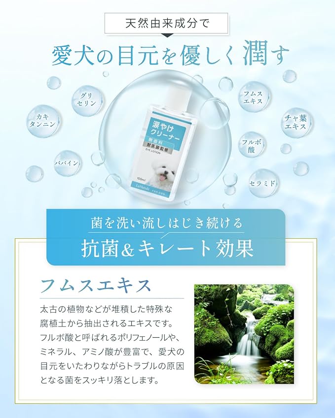✅【涙やけをスッキリ拭き取り】目元の汚れやニオイが気になる涙やけを天然成分のフムスエキス、カキタンニン、チャエキスでスッキリ拭き取り。