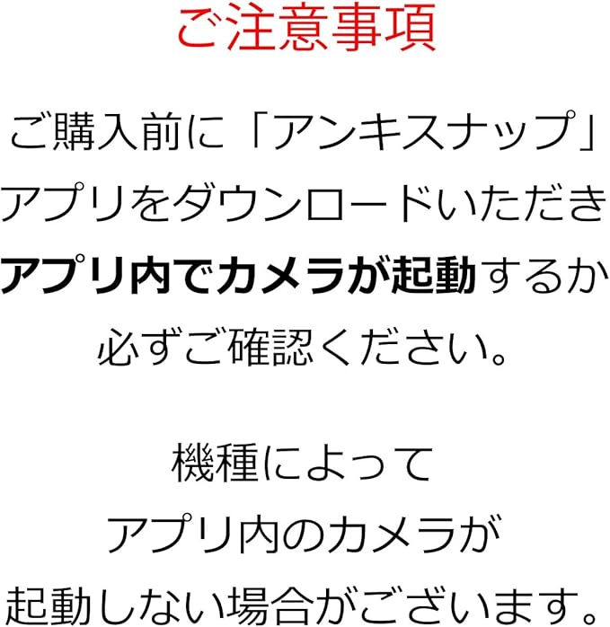 旧バージョンのOS、もしくは最新バージョンのOSには対応していない場合がございます。【ご購入前に、アプリををいただき、カメラ機能が起動するかご確認ください。】