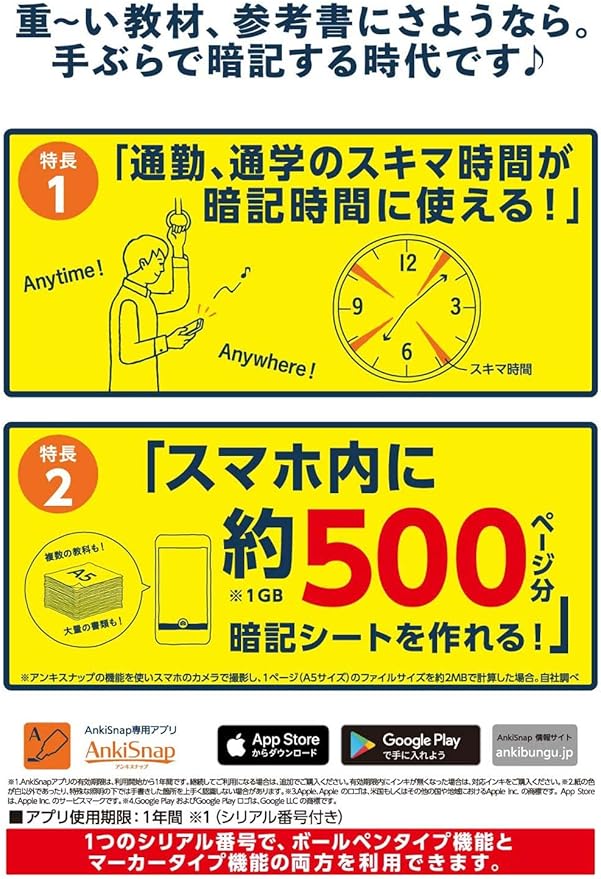 【特長】スマホアプリで暗記学習ができるボールペン