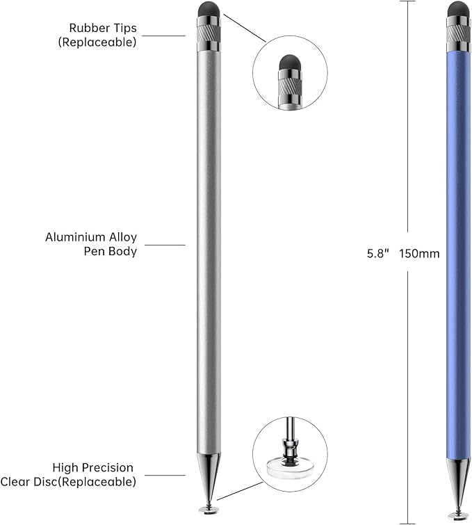 【2-in-1スタイラスペン】タブレットペン、軽量合金製、接続や充電の必要はありません、パッケージを開いて使用する準備ができて、快適な感じ、頑丈で耐久性があり、いつでもどこでもあなたのインスピレーションを簡単にキャプチャするためにそれを使用することができ、紙の上に書くようにすべてを作り、より正確な書き込み/描画/タッチ体験を与える。