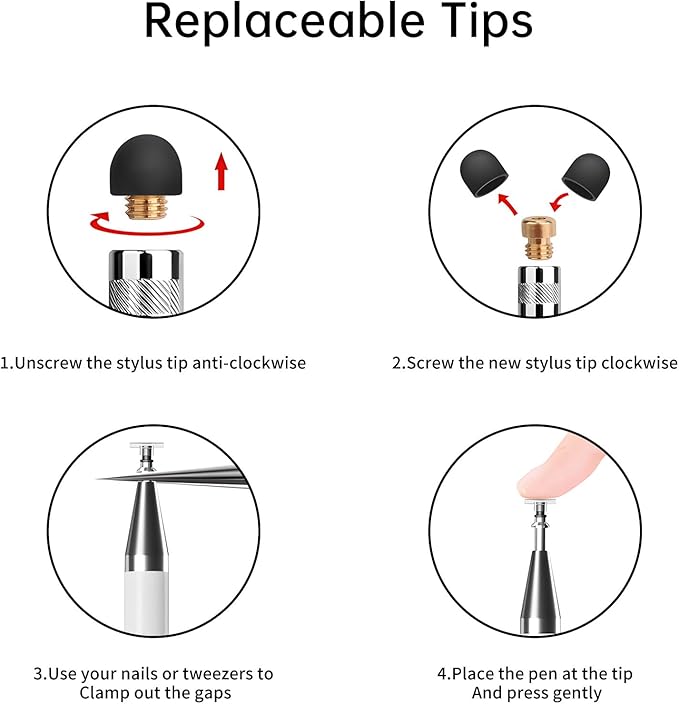 【高精度と高感度】タッチペン柔軟な透明ディスクチップを採用しており、タブレットや携帯電話に途切れた線を残すことなく、画面に柔軟にフィットし、より優れた柔軟性と精度を提供します。 ラバーチップとディスクチップで、2つの異なるタッチ体験を提供します。