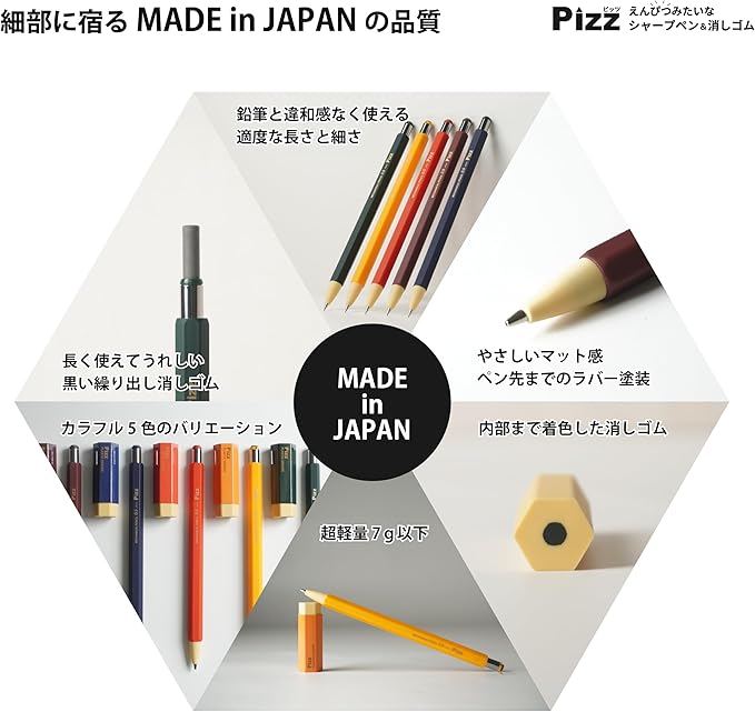 【Pizz】はじめてのシャープペン/誰もが懐かしい六角デザインのレトロな筆記具セット