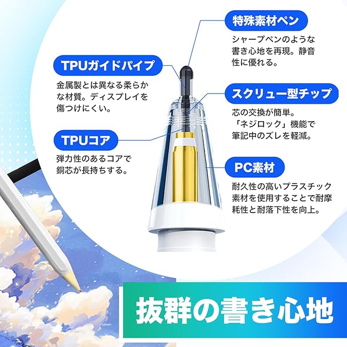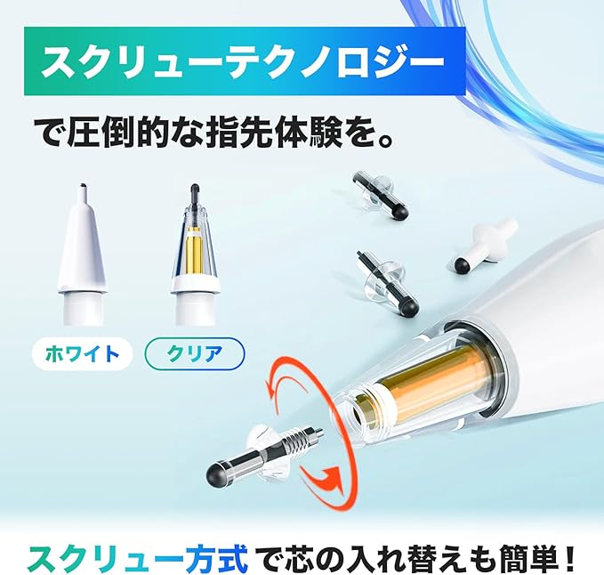 「紙に書く」を追求したApple Pencil ペン先!アッと驚く革新的な芯交換で、より抜けにくく! (スクリュー式芯交換) ペン先 1個+6つの替芯入り 【Apple Pencil proにも対応!】 pencil tips SCREW (クリア) | oioioichan