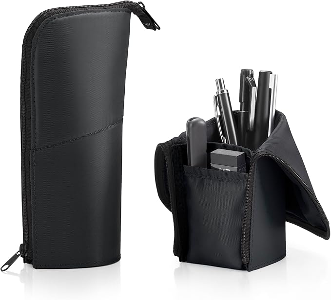 【POINT1:上部を折り返してペンスタンドに早変わり。】中身の収容物が探しやすく取り出しやすい立つペンケース。ペンスタンドとペンケースの両用途で使えるためオフィス等で便利。