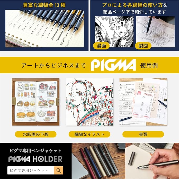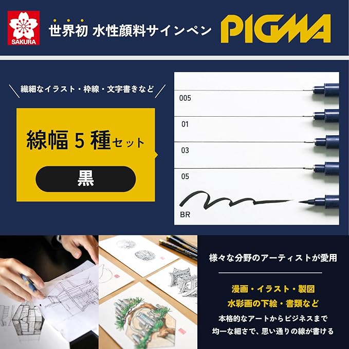 サイズ: 0.05mm・0.1mm・0.3mm・0.5mm・ブラッシュ(筆タイプ)