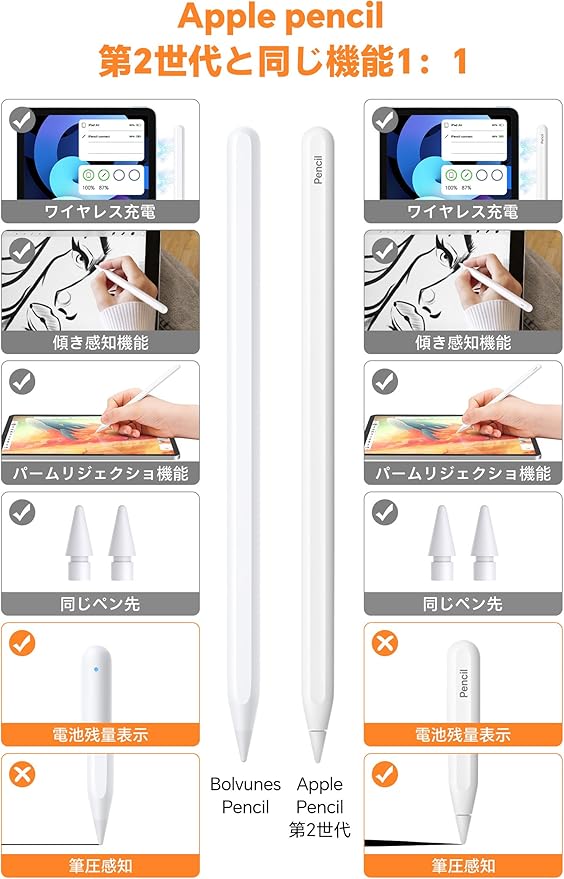 【正規認証品】アップルペンシル 第2世代 Bolvunes iPadペンシル 対応 ワイヤレス充電【先端技術突破】スタイラスペン 超高感度 iPad ペン ipad pencil 磁気吸着充電/0遅延/傾き感知/誤作動防止 iPad Pro 12.9'(第3/4/5/6世代)/iPad Pro 11' / iPadAir(第4/5世代)/ iPadmini 6対応(K2) | oioioichan