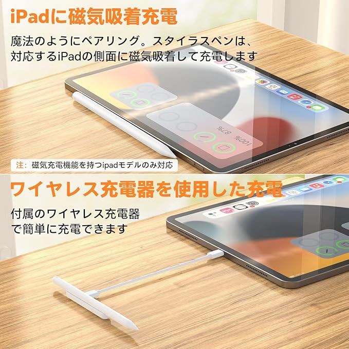 ️【重要!!購入前にお読みください】注:磁気充電機能に対応しているiPadモデル:iPad Pro 12.9インチ (第3/4/5/6世代)、iPad Pro 11インチ (第1/2/3/4世代)、iPad Air (第4/5世代)、iPad mini第6世代。 上記以外のiPadは磁気吸着充電には対応していませんが、付属の充電器を使用して充電できます。