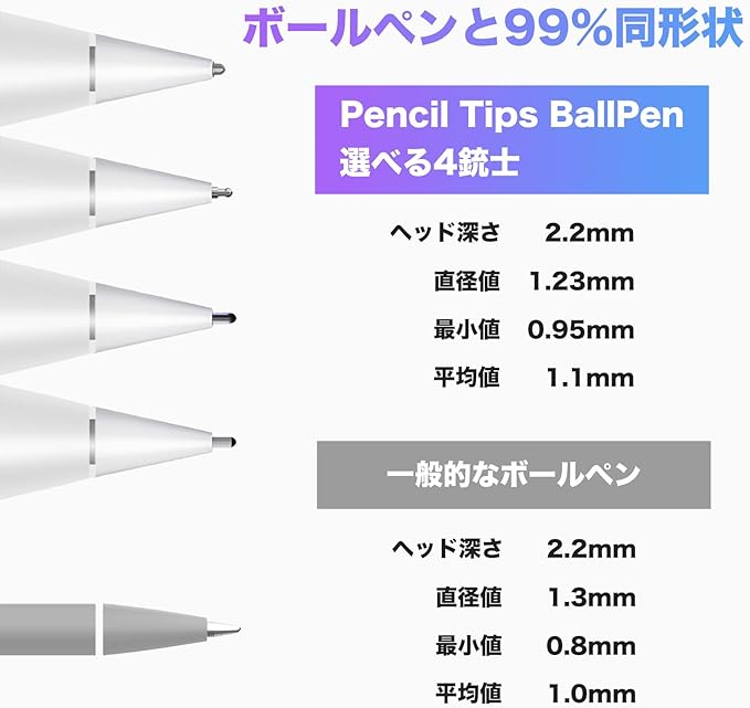 アップルペンシルをボールペン感覚で!【選べる4士】で、あなたに合った真のペン先が見つかる!Apple Pencil専用ペン先【Apple Pencil Pro対応】Pencil Tips Ball Pen 4種入り (クリア) | oioioichan