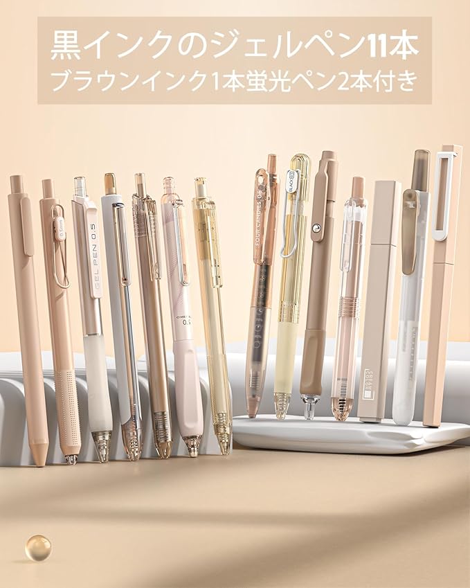 Four Candies ジェルボールペンセット 可愛いノート型ゲルペン 0.5mm12本ボールペン&2本蛍光ペン かきやすい 速乾性インク 学校 ノート 筆記 メモ 学生文房具に最適-茶色 | oioioichan