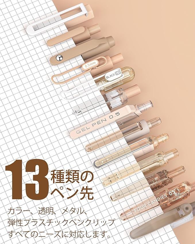 [携帯用ペンクリップ&快適なラバーグリップ】それぞれのかわいいペンには、ノートやポケットに簡単に固定できる異なるスタイルのクリップが付属しており、持ち運びが簡単で紛失を防ぎます。これらのゲルペンにはソフトラバーグリップがセットされており、持ちやすく、手の疲労を軽減し、特に長時間の筆記時に筆記コントロールが向上します。
