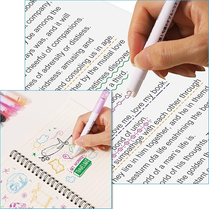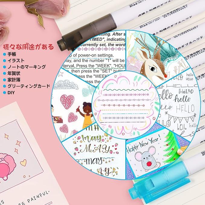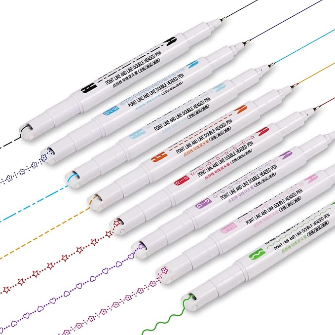 VACNITE カーブペン 水性ペン デュアルチップペン ローラースタンプペン 6種類 8色細字ペン先 速乾 文房具 カラーペン マーキング お絵かき イラスト 手帳 DIY日記 筆記用 趣味 水性ペンセット 子供 大人 ギフト オフィス用品 | oioioichan