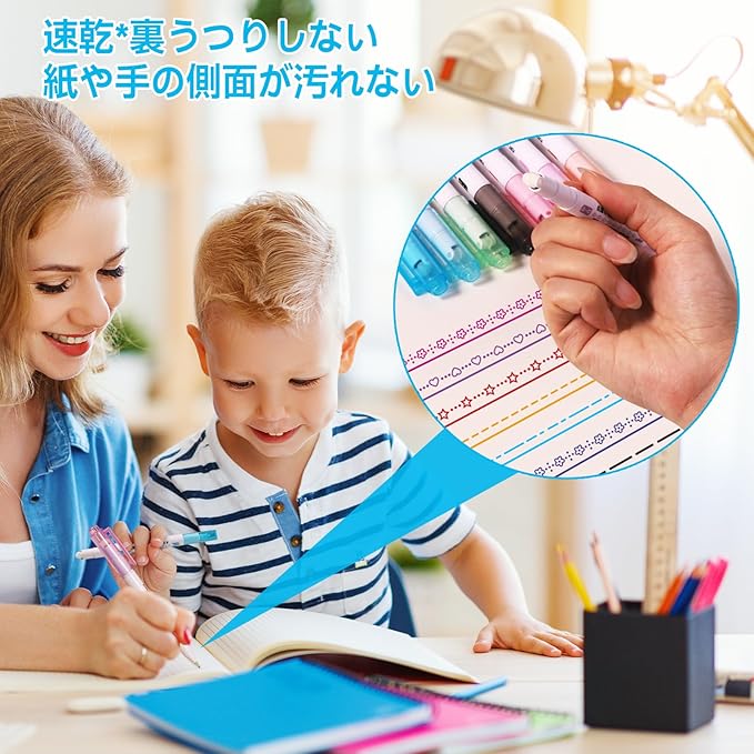 【改良版&長持ち】改良したカラーペンは、インクの量が従来比で40%多くなり、より長時間使用することができます。マーカーチップには新しい不乾性インクが使われており、ペン先が均一にインクを配分して滑らかな書き心地を保ち、ペン先のインクが乾燥することを防ぎます。