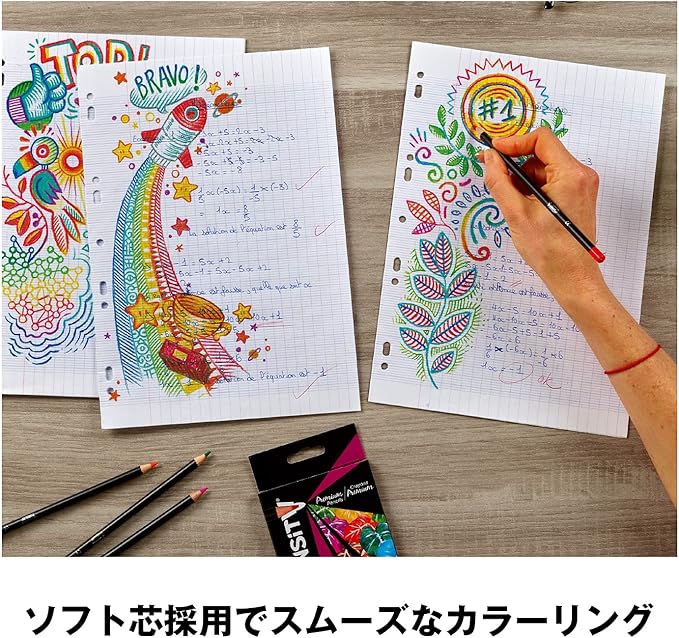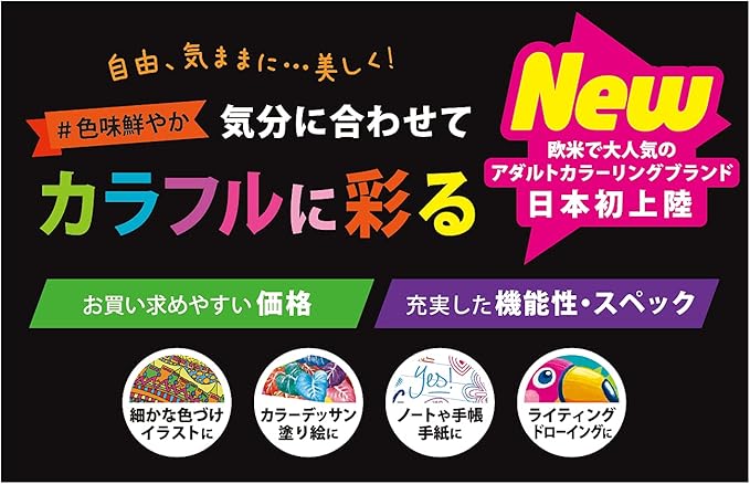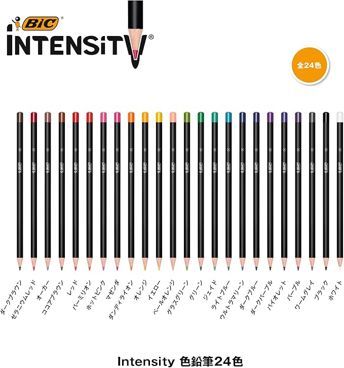 バーミリオン、ホットピンク、マゼンダ、オレンジ、ダンディライオン、イエロー、ペールオレンジ